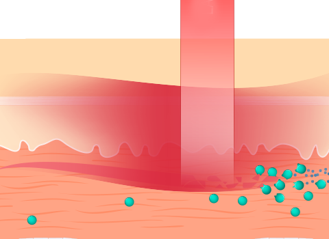 정상조직 부위에 전달된 레이저 빔은 콜라겐 재생을 촉진하여 피부 재생을 도와줍니다.